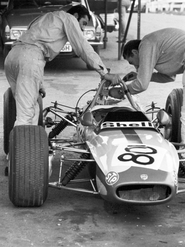 Carlos Pace, Lotus 59 (Wilson Fittipaldi in background)